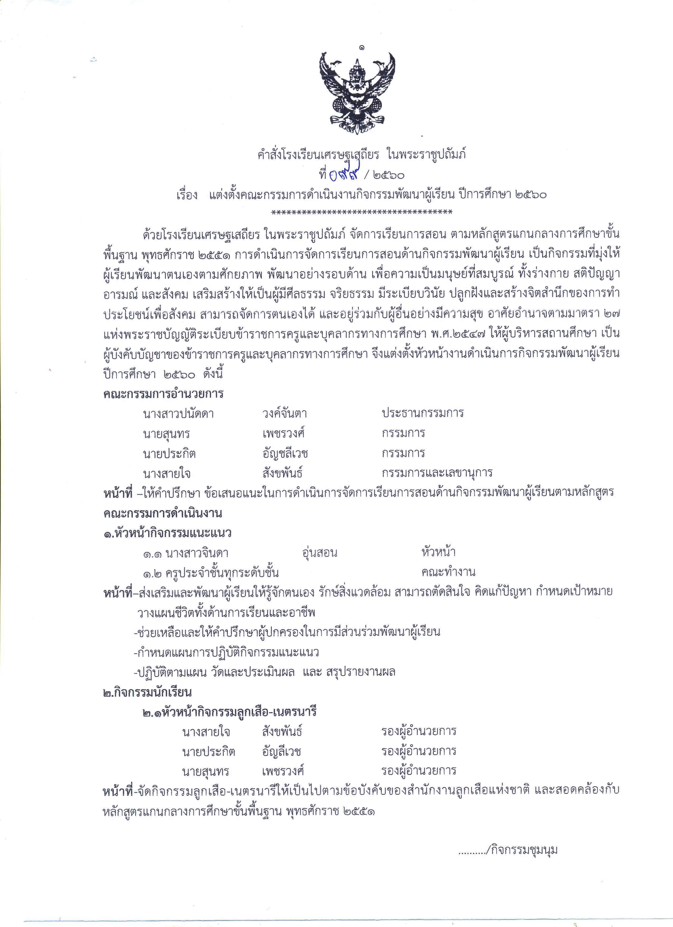 แต่งตั้งคณะกรรมการกิจกรรมพัฒนาผู้เรียน