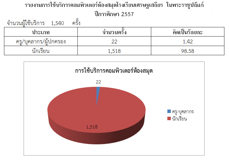 รายงานการใช้บริการคอมพิวเตอร์ห้องสมุด ปีการศึกษา 2557