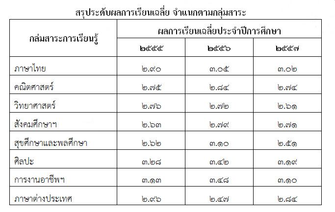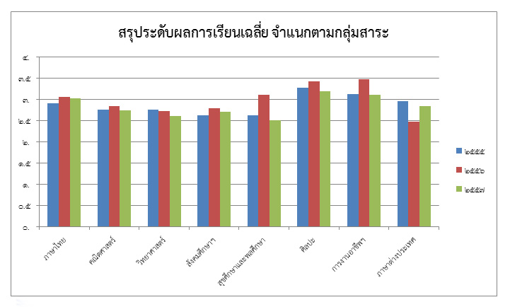 สรุประดับผลการเรียนเฉลี่ย จำแนกตามกลุ่มสาระ