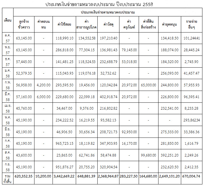 ประเภทเงินจ่ายตามหมวดงบประมาณ ปีงบประมาณ 2558