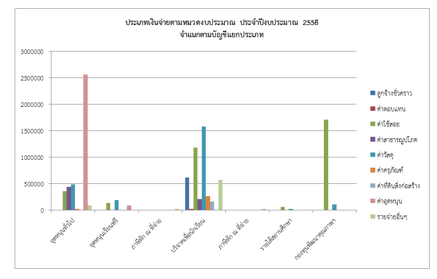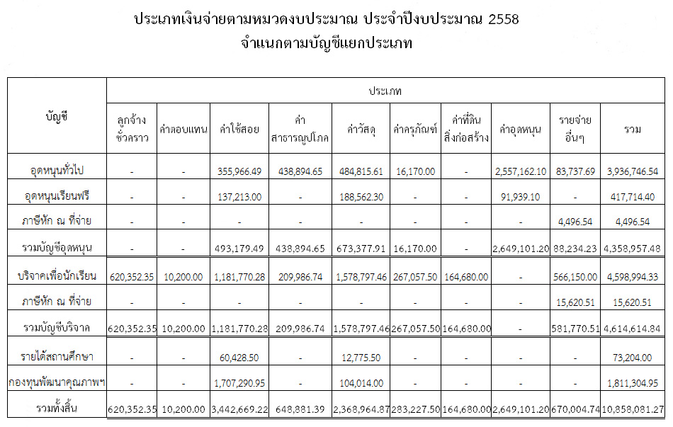 ประเภทเงินจ่ายตามหมวดงบประมาณ ประจำปีงบประมาณ 2558 จำแนกตามบัญชีแยกประเภท