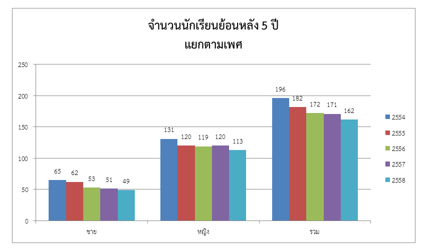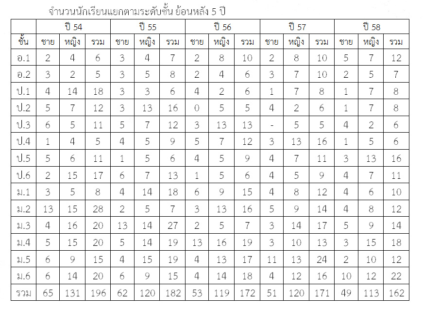 จำนวนนักเรียนแยกตามระดับชั้น ย้อนหลัง 5 ปี