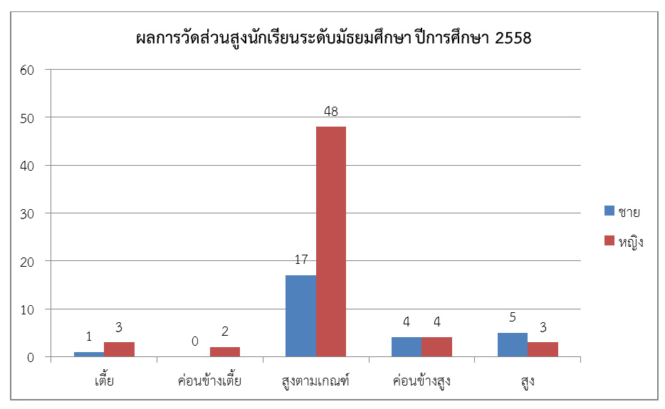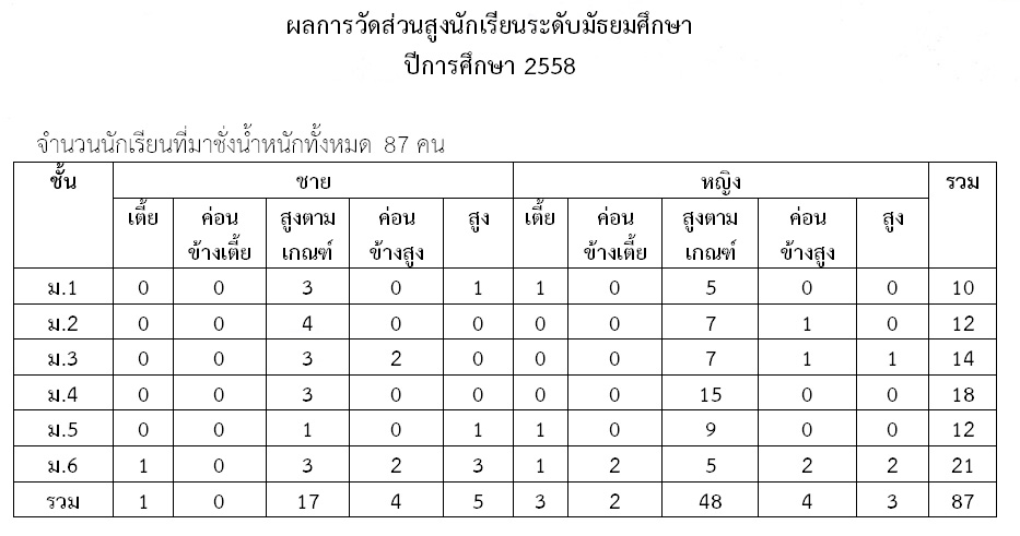 ผลการวัดส่วนสูงนักเรียนระดับมัธยมศึกษา ปีการศึกษา 2558