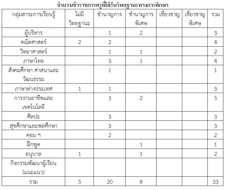 จำนวนข้าราชการครูที่ได้รับวิทยฐานะทางการศึกษา