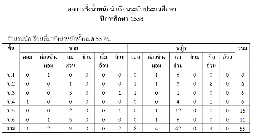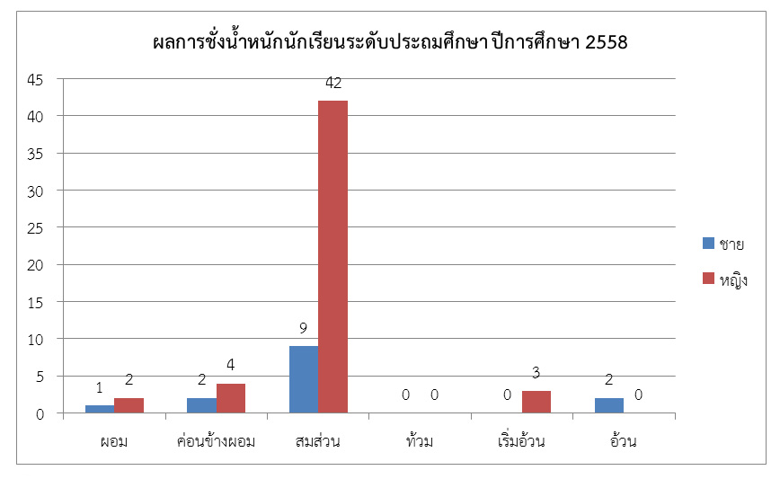ผลการชั่งน้ำหนักนักเรียนระดับประถมศึกษา ปีการศึกษา 2558